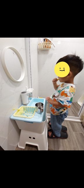 1.小孩練習自己看著鏡子刷牙、洗手都不用抱也不用嚕椅子