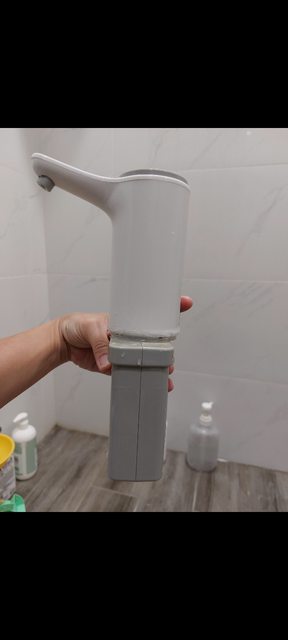 因此把水龍頭拔掉,留下下半部當底座,想辦法把抽水器黏上去就是了。