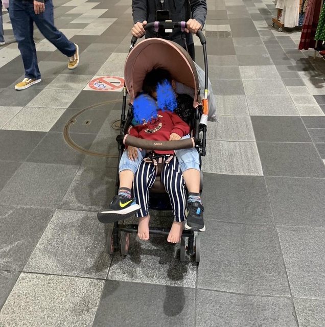 2V2的前兩天爸媽各推一台,但發現要找路、要吃飯、要搭車兩台推車真的太不方便了,所