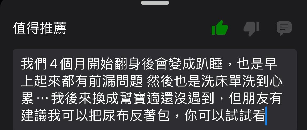 推 yangfan : 我們家寶寶也會漏 後來我尿布前面包高一點點 魔鬼氈 04/23 09:35