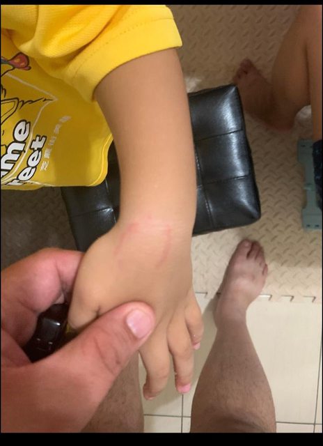 → sunshine5453: 拍照給我看情況,小孩手臂上有齒痕且瘀青,我要求 04/24 21:25