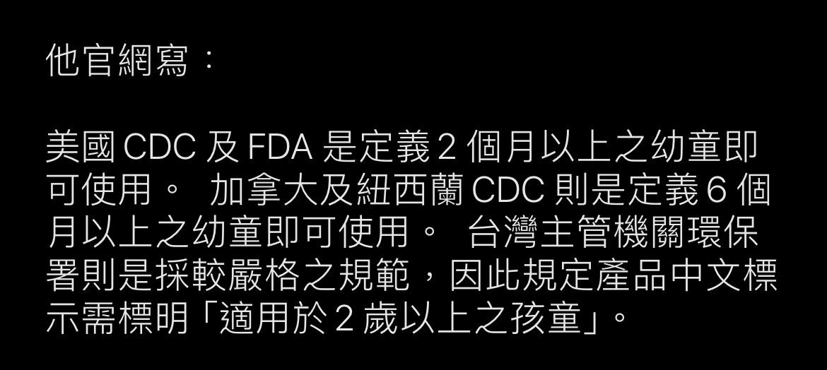 olivewood : 兒身上,濃度、成分、月齡也有限制 05/02 23:05