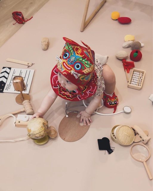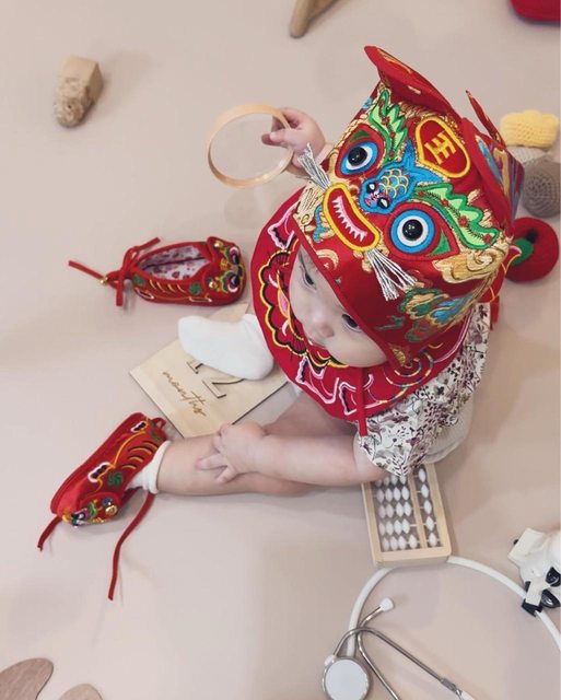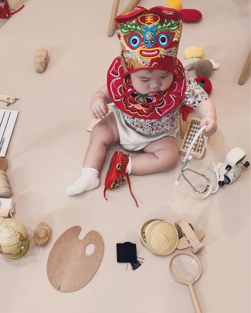 虎衣則是意外逛到虎頭造型的兜兜很喜歡,