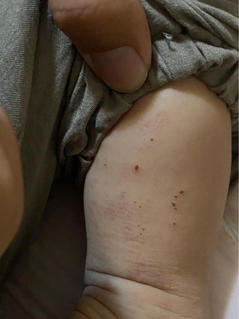 小孩的臉部、手、腳都有疑似被蟲咬的跡象