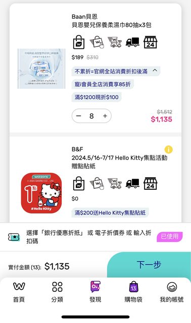 感謝樓下clsamila補充,pchome也有很便宜的濕紙巾喔,我後續有搜到可用618折價券的還