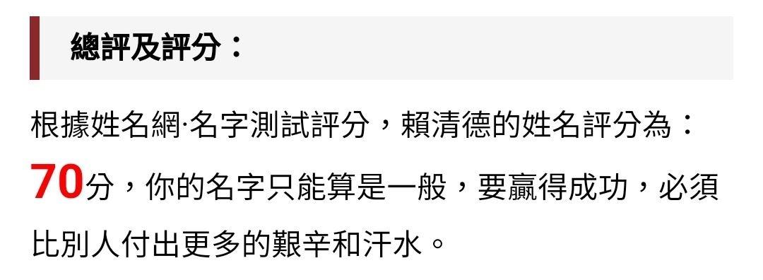 → MosDonalds : 你可以把台灣歷任總統、甚至五院院長的名字輸入算 06/27 01:47