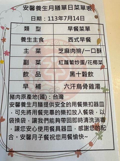 月子餐是配合安馨,沒有其他選擇