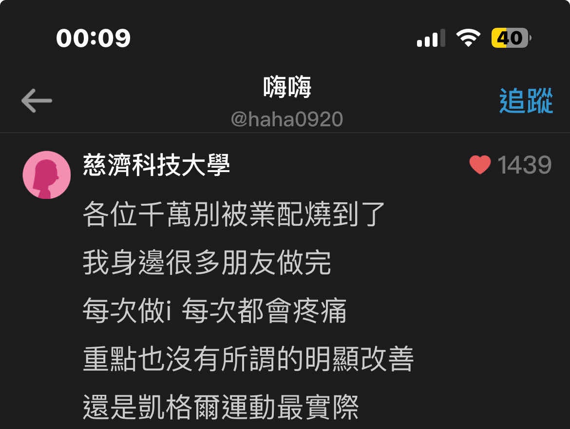 Crimaggr : 像我現在做了三次,外出也不會再有憋不住的問題,你想 07/18 17:04