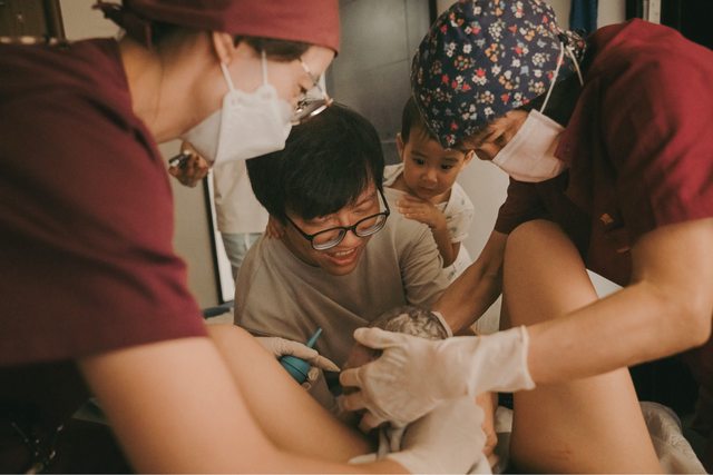 在溫暖的家裡有大寶、貓咪、生產隊友們的陪伴 迎接寶寶的到來 — 兩年半前在樂寶兒由助產師協助生下大寶 當時就想著如果有二寶一定要居家生產! 只是大寶出生後我出現了甲亢的症狀 而且一直到大寶一歲半才發現並開始治療 但病情還沒穩定,二寶就來報到了 考量到大寶生性敏感 以及希望在自己熟悉溫馨的家裡迎接孩子 生產的計畫以盡可能降低全家人的變動為目標(包括貓咪們) 因此雖然擔心甲亢的生產風險(甲狀腺風暴、產後大出血) 但還是希望能以居家生產的方向進行 最後在產前甲狀腺數值穩定了,產檢醫師也認為我不算高風險產婦 因此順利在家裡迎接了寶寶的到來 產前在溫柔生產社團也試著找甲亢病史居家生產的經驗但都找不到 所以想說在媽寶版也分享 希望能幫助到往後期待居家生產的產婦們 — 在產檢初期我就告知醫生計畫居家生產 原本擔心專精高風險妊娠的醫生會十分不支持 但沒想到隨著孕期的進展、甲亢數值越來越穩定 以及可能他看我意志堅決(XD) 從一開始的適時提醒甲亢生產風險 到後來我提出一些因應居家生產可能需要的用藥 他也很樂意協助 例如因為乙鏈陽性,改成提前用口服抗生素治療 以及協助開自費的子宮收縮劑 我的產檢醫師在後期從長庚轉到中山醫院看診 很感謝的是他雖然沒有十分支持居家生產的計畫 但後期也只是跟我們說 「要不要還是來中山生啊」 「在醫院也很溫馨啊,大寶可以一起進產房啊」 沒有用一些可怕的病例或是可能的風險恐嚇我XD 在中山醫院遇到的衛教護理師也很棒 她知道我們的生產計畫後 還是耐心讓我們詢問醫院生產的規定、也細心提醒留意產兆 以及若真的需要後送醫院的話到院時要如何跟護理人員溝通 — 懷孕期間就想著如果居家生產 大概會需要助產師以及爸爸以外的後援吧 所以詢問了大寶的乾媽以及乾爸是否願意陪產 想著一位可以幫我們陪伴安撫貓咪 另一位則可以幫忙陪伴大寶 而孩子的姨媽(我的親姐姐)同樣有居家生產的經驗,當然也是絕佳的陪產員了 但考量到未婚的乾媽跟乾爸都還沒有生產的經驗 在35週左右時,邀請他們一起去上了生產瑜珈 讓他們對於產程有個基本概念 也找了居家生產影片給他們預習 一切準備就緒 (除了爸爸本人,看完居家生產影片後更焦慮不安XD) — 寶寶38+4這天晚上的11點正準備上床睡覺 發現有液體流出,原來這就是破水啊! 生大寶的時候完全沒發現什麼時候破水的 所以對這感覺好陌生 第一時間馬上聯絡了助產師玉惠跟郁晴、孩子的姨媽以及乾爸乾媽、攝影師 爸爸則開始忙進忙出,準備待產用品 晚上八點多才睡著的大寶也被我們吵醒了 睡意全消,跟著爸爸到處跑來跑去興奮的不得了 過了午夜後開始出現大約十分鐘一次的宮縮 由於生大寶時產程進展很快 破水後我就躺在床上,在助產師抵達前不敢起來活動 怕爸爸要獨自接生孩子XD 一點左右助產師、攝影師還有來陪產的乾爸媽也都到了 宮縮的頻率也越來越密集,進展到大約5分鐘一次 但就跟生大寶的時候一樣 我沒有感覺到很明顯的規律或pattern 在助產師的建議之下,沒有宮縮的時候 吃了點東西補充我自己跟寶寶的體力 並且持續補充水分 玉惠助產師本來想讓我休息一下讓產程慢慢進展 但是宮縮時不時來一下根本睡不著 而且陪產隊友們都來了 趕快生一生讓大家回去休息不是很好XD 後來宮縮的強度也慢慢在增加 玉惠阿姨就搬來了生產椅 乾脆來利用生產椅幫助寶寶下降前進吧! 在生產椅上經歷了兩次宮縮,助產師就請我躺回床上 接著就明顯感受到宮縮的強度逐漸攀到高峰 一次的宮縮結束沒多久 還沒能有足夠時間喘息,接著下一波宮縮又來了 已經越來越難忍著想用力的衝動 越來越難靠呼吸放鬆了 很快的就是熟悉的會陰擴張的灼熱感 助產師們請爸爸準備接生 然後我聽到爸爸說摸到頭了、肩膀出來囉 接著感覺到一陣肚子的不適,以為是助產師在推肚子還大聲說「誰在推她嗎?不要推!」 結果原來是寶寶在用力踢著要前進 最後,破水後不到四小時 38+5的凌晨,寶寶出生了 https://i.imgur.com/wMDSKLN.jpeg