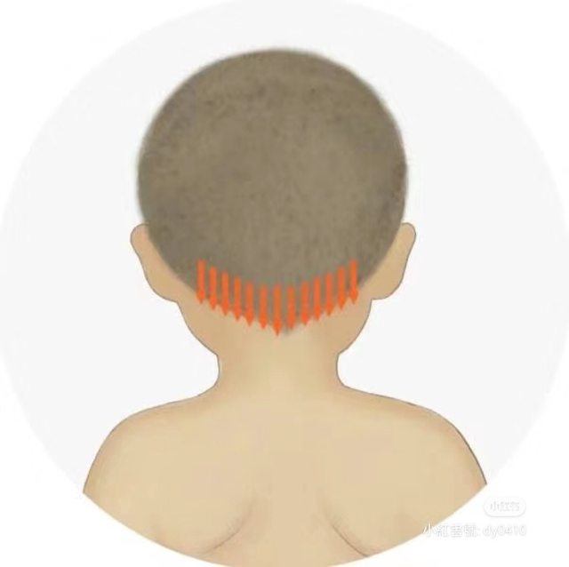 4、幫小孩梳項從的位置,三歲以上用刮痧板可能會比較省力,沒板就用手
