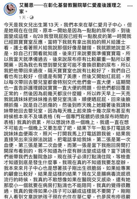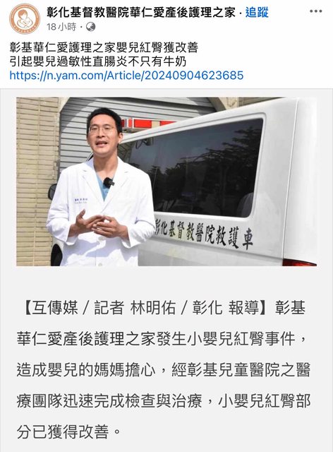 請問最近有入住彰化華仁愛產後護理之家的爸媽嗎? 請問方便分享目前照護狀況如何呢? 剛在FB社團有看到負評,嬰兒紅屁股血便產婦自行送醫 官方也發了新聞稿澄清 目前看起來各說各話沒有共識 家人即將生產正在考慮是不是要退訂 不過也擔心找不到備案 謝謝大家 https://i.imgur.com/DrtjlCm.jpeg