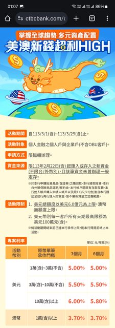標題Re: [情報] 中國信託 美澳新錢超利 美金最高6%