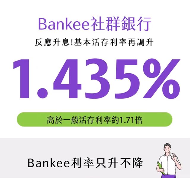 推 okla1244: Bankee基礎利率又升了 不錯哦 03/28 17:18