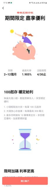 : 1.925% 4,6,9個月定存 ,應該是目前很不錯的選擇