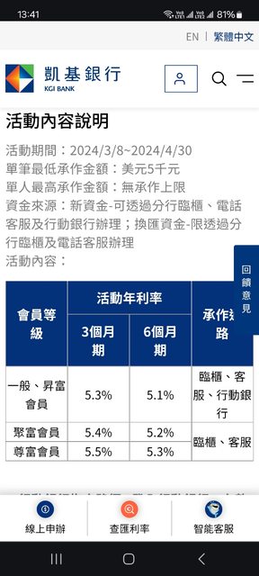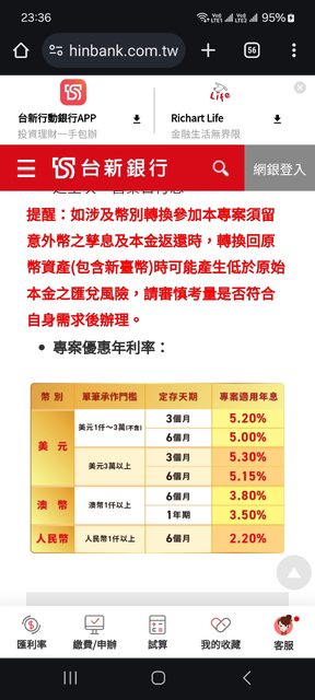 → irrealsu: 其實richart有時推出的外幣定存利率還算不錯,缺點就是04/05 21:05