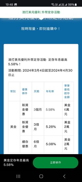 → mamamia8888: 去年底舊戶只給我4.9%,4月中到期可能要再轉掉,04/05 20:18