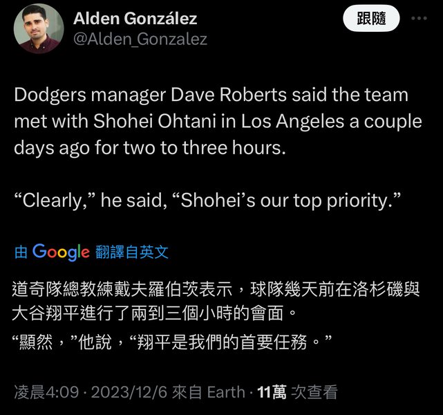 → Axwell: 巨人是啊 大谷前幾天才去甲骨文球場欸12/06 05:29