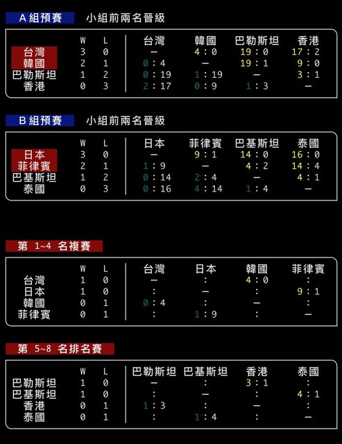 標題[情報] 亞錦賽 小組賽戰績 / 複賽賽程