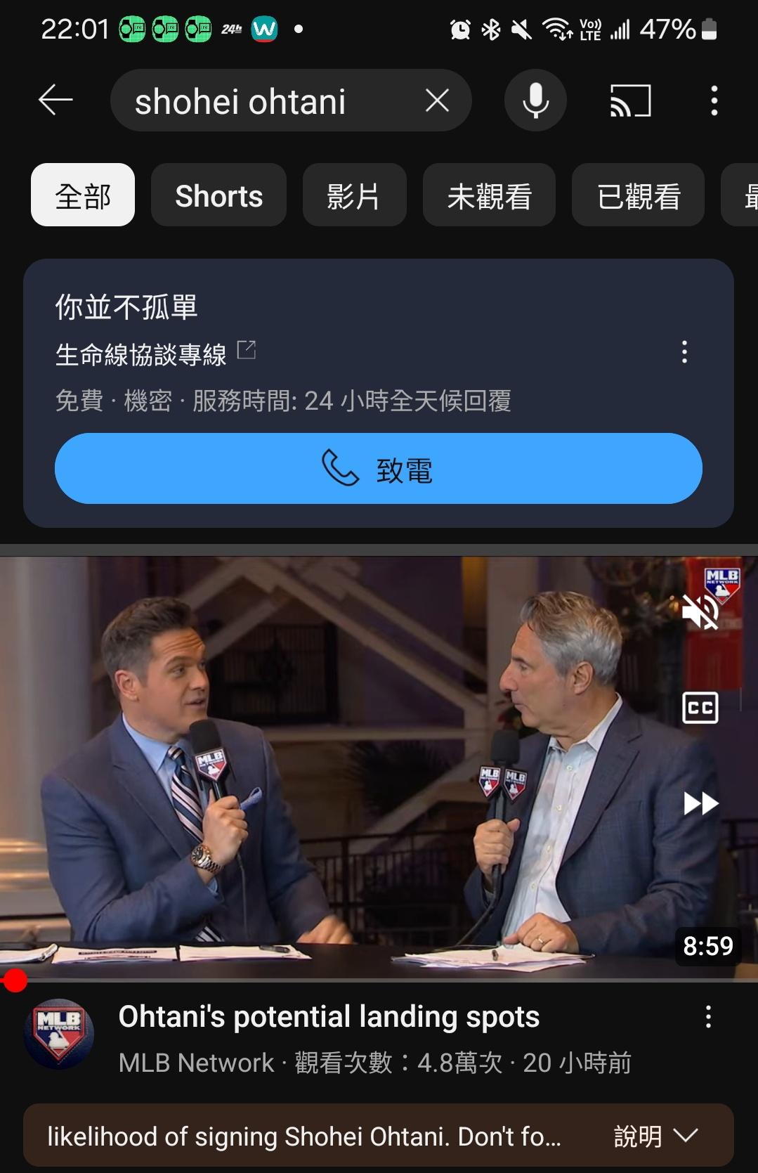 → Axwell: YT搜尋大谷跑出自殺警語? 12/08 22:00
