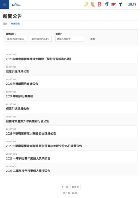 至今中職官網仍只有2筆任意引退公告