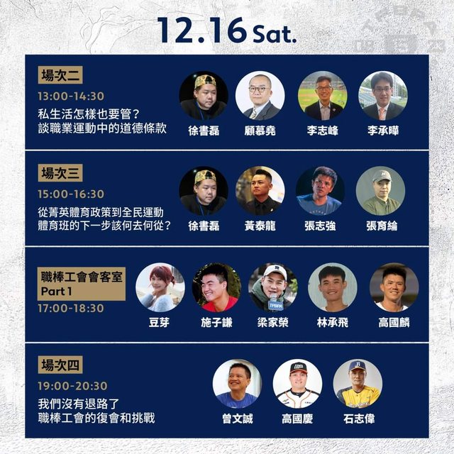 ▊12/16㈥17:00-18:30|職棒工會會客室Part.1|施子謙、林承飛、梁家榮、高國麟、豆
