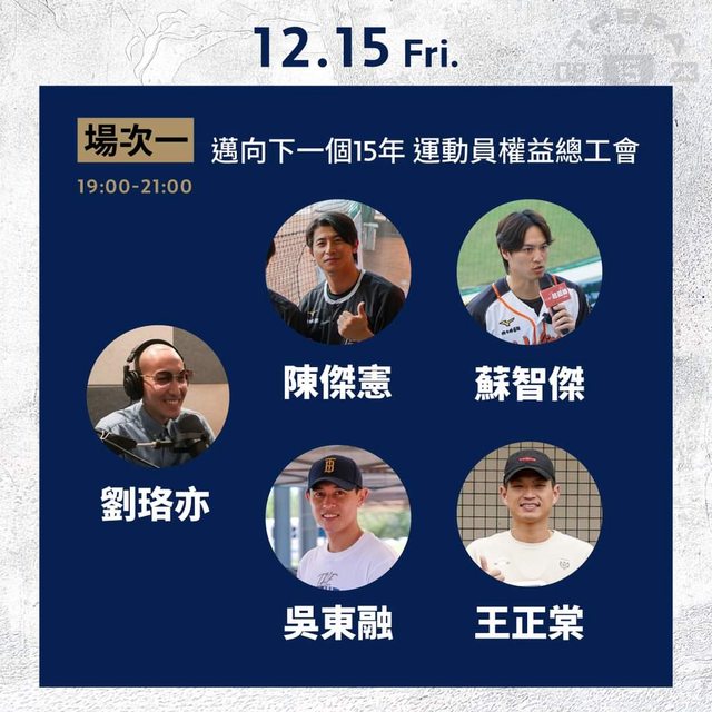 ▊12/15㈤19:00-21:00|場次1|邁向下一個15年-運動員權益總工會|陳傑憲、吳東融