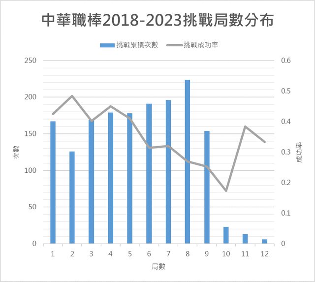 今年各隊的挑戰次數/成功率