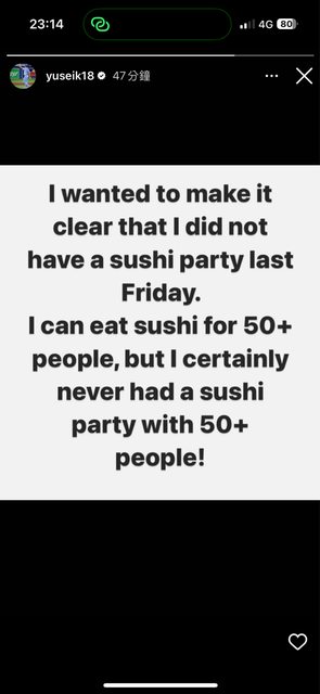 菊池雄星在自己IG限動澄清了壽司店包場的傳聞