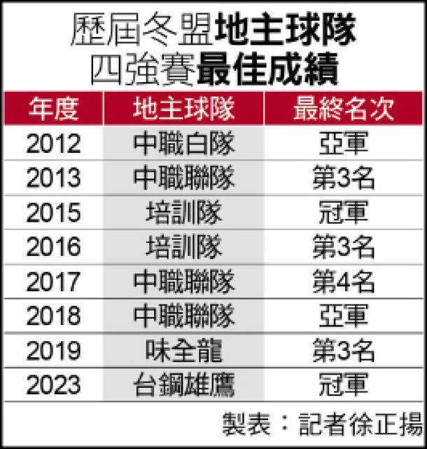 過去地主隊只有成棒培訓隊曾在2015年奪下冬盟冠軍,台鋼則為中職球隊寫下新頁。由