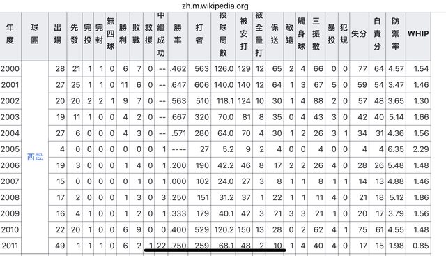 : 許銘傑在西武待了12年,生涯49W 49L,8完投5完封