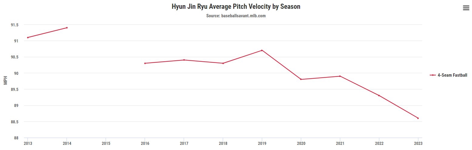 度落在92到95英哩左右,最快能碰到97英哩,且由於他投球時手臂的延伸比聯盟平均要多