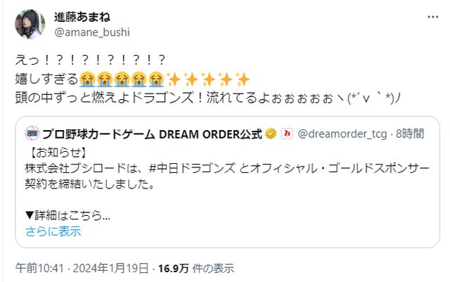 標題[分享] Bushiroad成為中日龍2024年贊助廠商
