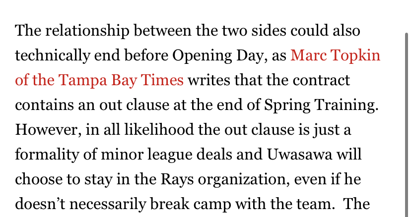 → sesd: 當初本人直接說 沒大聯盟合約 小聯盟也願意 現在變因為光芒 01/22 15:49