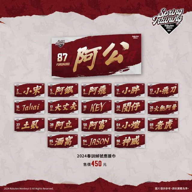 2024春訓綽號應援巾 450元