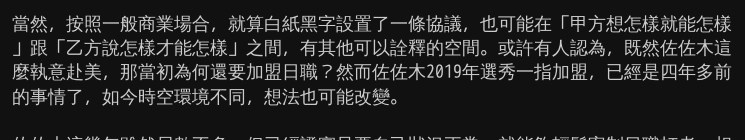 → chdc: 問題在提早放人協議啊 球團沒承諾的話大可態度強硬踩死 01/31 13:05