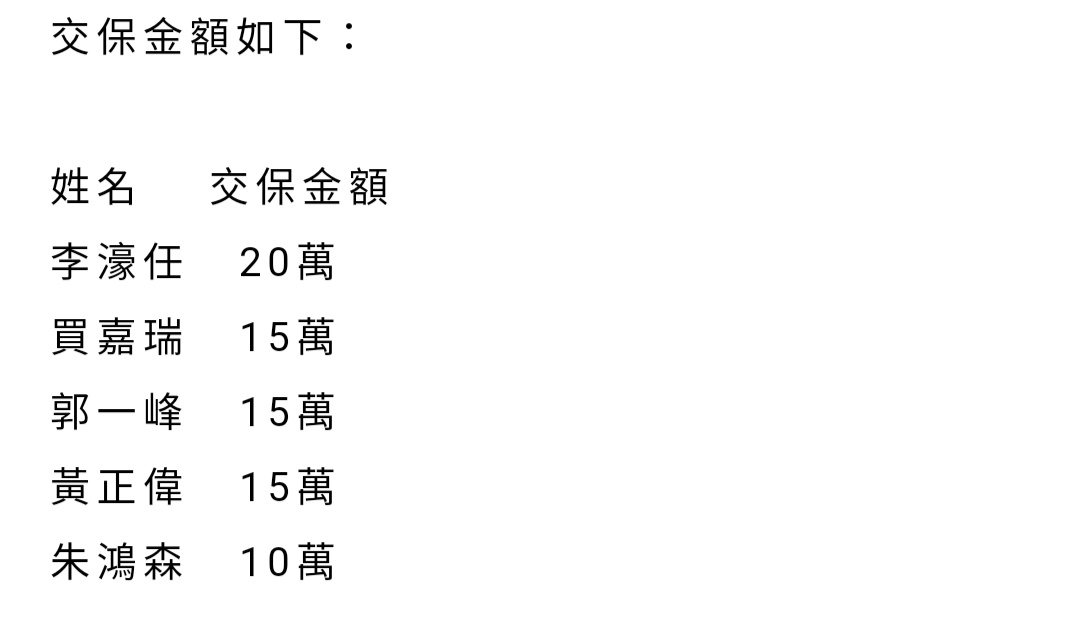 推 yuzuki: 我查到的最高交保金額是5.5億元 01/31 14:34