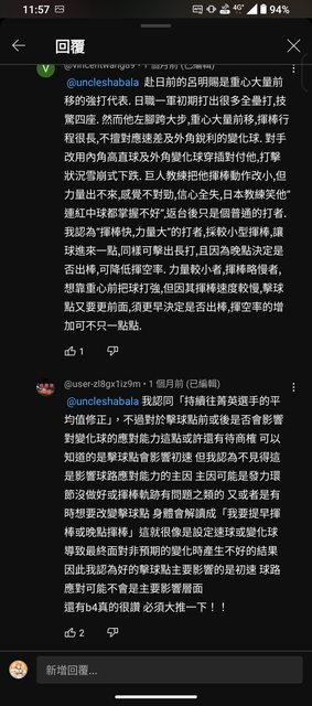 → ts1993: 長打 通常擊球點都會比較前面阿 01/16 12:29