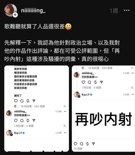 Cervelli: 嘔嘔嘔,就是有他那種人,嘻哈圈才會被認為只會寫色寫 01/19 11:50