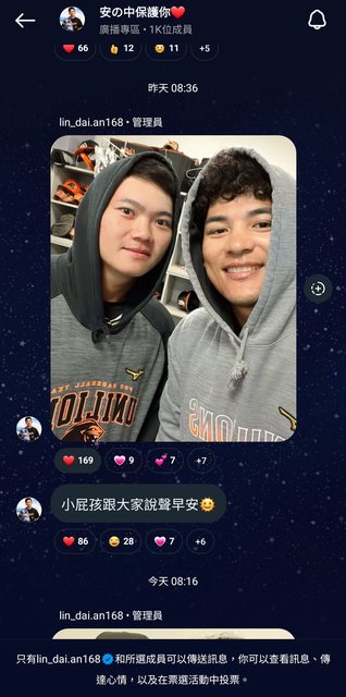 岱安IG的廣播專區春訓開始每一天早上都會找一個球員合照,好可愛噢><,每天起床都在