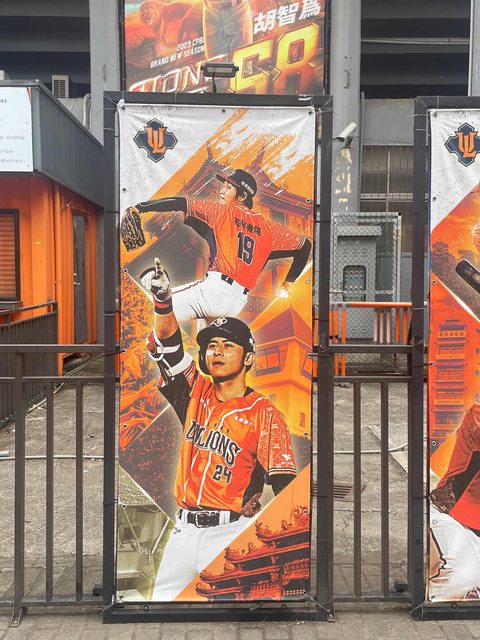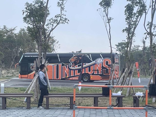 運氣很好剛好遇到統一獅的大巴也來了