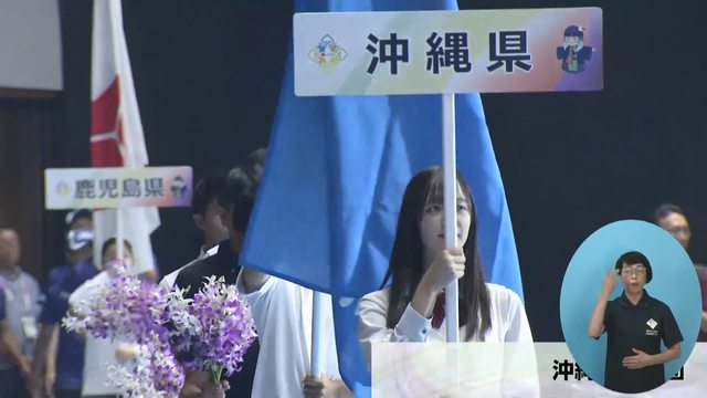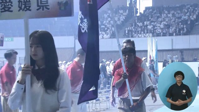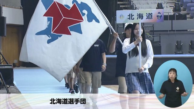 センター舉行総合開会式,由北海道札幌白石高等学校的男女學生擔任舉牌員。