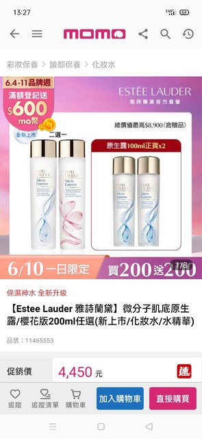 昨天偶然看到momo的通知,好像是6/10一日限定活動,原生露和櫻花水任選買200ml正貨