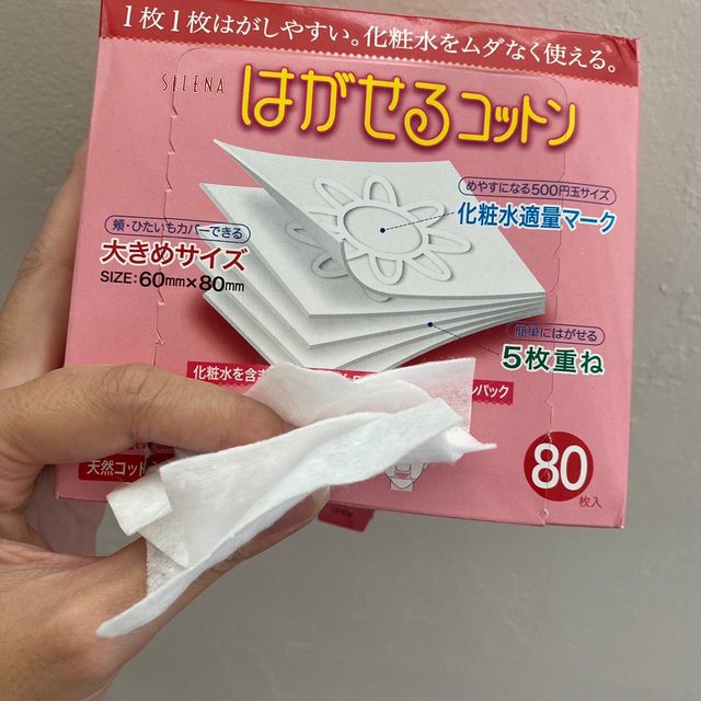 所以最近逛寶雅就買了這個丸三 五層可撕型化妝棉