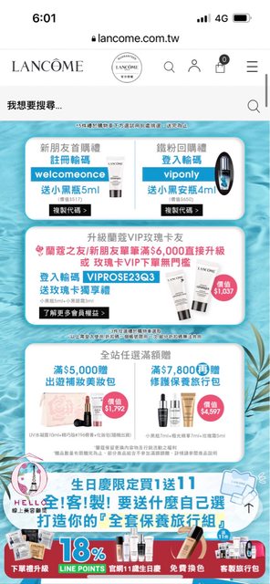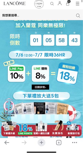 標題[情報] 蘭蔻官網生日慶 line回饋18%