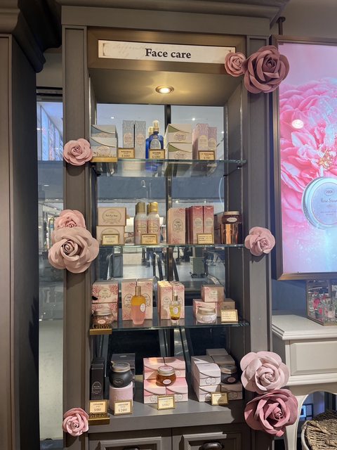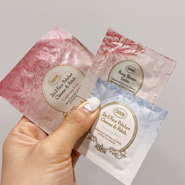櫃姐給我薄荷跟玫瑰的臉部磨砂膏各1跟玫瑰水凝凍