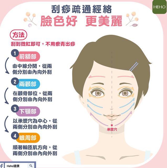 手法上速度要慢一點、用一點力道在左右邊各刮五下