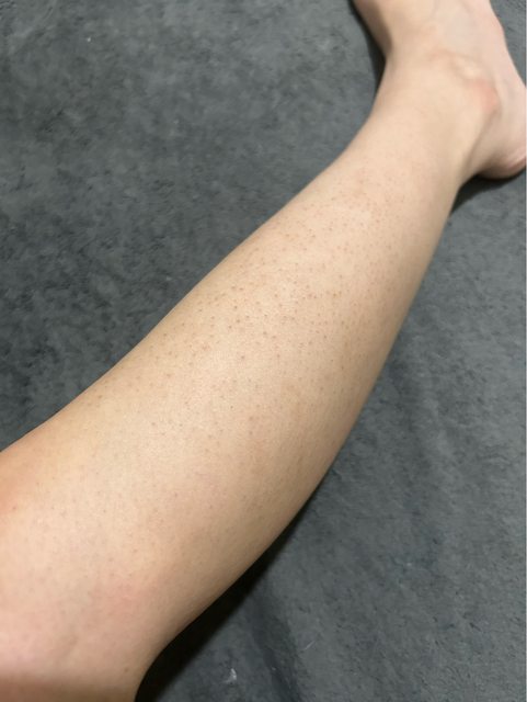 本身因為以往都是用拔除的方式除毛,所以腳上有滿嚴重的毛囊角化和內包毛的問題