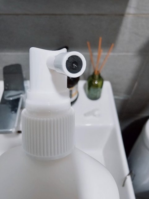 噴頭噴出的水霧較為集中,滿明顯的薄荷味