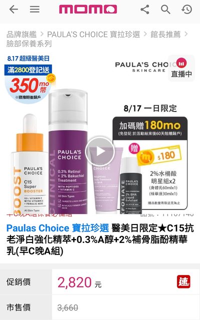標題Re: [情報] 寶拉 momo醫美節 組合88折+折價券