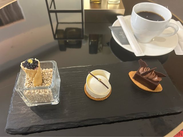 桌,因為護膚結束已經晚上了,我不打算再上妝,所以直接享用甜點跟咖啡,甜點最左邊